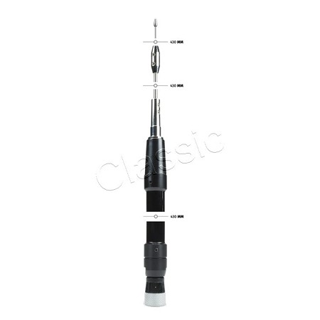 By turning the lower section, the antenna can be extended and the correct length for the respective band can be set according to the supplied diagram. Fine tuning by setting the length of the whip.