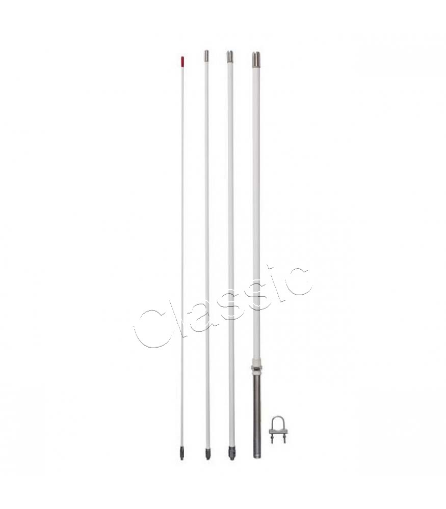 Can be used for the 11 meter CB band and 10 meter amateur band. Factory pre-tuned for the CB band. The standing wave can easily be tuned with the two threaded counter rings on the coil. Rugged 4-piece fiberglass construction with hard chrome-plated ferrules. Extremely weather-UV resistant. Quick and easy installation of the antenna, simply screwed together and secured with snap rings. Two steel U-brackets allows easy side mounting on antenna masts till 40 mm. A very good alternative for Antron 99.